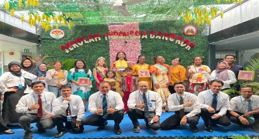Bangkok, 13 Juni 2022-Sekolah Indonesia Bangkok (SIB) menerima kunjungan dari para Duta Indonesia yang sedang berkompetisi pada ajang Junior Idol World International 2022 dan International Kids of the Years 2022 tanggal 12 Juni 2022. Sebelum kembali ke Indonesia, rombongan menyempatkan hadir ke Kedutaan Besar Republik Indonesia (KBRI) Bangkok dan SIB. Pada kesempatan tersebut, rombongan diterima oleh Atase Pendidikan KBRI Bangkok, Bapak Achmad Wicaksono didampingi kepala SIB, Bapak Susianto mendapat cindera mata Selendang Noken Papua yang langsung disematkan oleh Miss Sofia Ayu Rizki asal Papua(16th). Terima kasih para duta Indonesia yang telah mengunjungi SIB, Ayudia Sitha MP (7th), Ratu Asyfa A (11th), Irsyad Adeeb P (16), Sofia Ayu R(16th), I Gusti Karaning G (6th), Ilham Fathan M (10th) serta tim pendamping dan director. Sukses dan terus harumkan nama Indonesia!