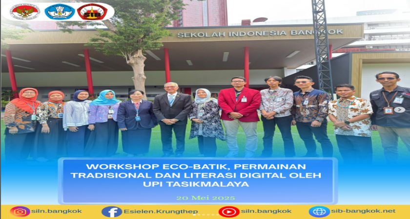 Selasa, 20 Mei 2025 – Sekolah Indonesia Bangkok (SIB) bekerja sama dengan Universitas Pendidikan Indonesia (UPI) kampus Tasikmalaya menyelenggarakan tiga workshop menarik: *eko-batik*, permainan tradisional (*gobak sodor*), dan literasi digital ✍????????????????????